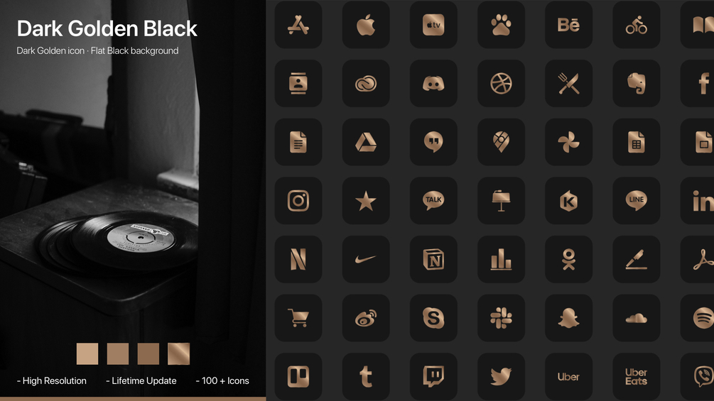 A Dark Golden Black version of the icon pack to help you customize your home screen with iOS 14.